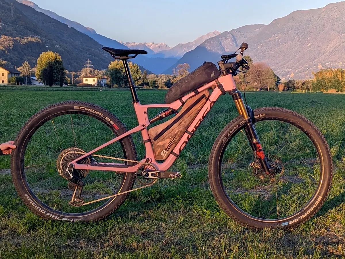 Key items of kit: Tailfin aeropack cargo (this thing is huge.. contains sleeping bag & pad, bivy, puffer jacket and other small items) and long top tube bag (lamps, multitool, power bank, wallet, ..) Wizzard work partial framebag (rain jacket, spare tube, electric pump, powerbank and cables). Home made feedbag (bars, gels, biberli, wipes, ..) I got rid of all the side and front bags to see how it would behave. Set-up might be a bit rear heavy but lets, see.
