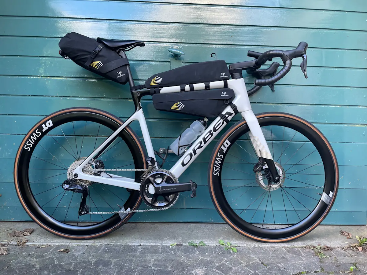 Key items of kit: Apidura bags (saddle, top tub race, frame) Cyclite Food Pouch Therm A Rest NeoAir Xlite Aero bar Deda Parabolica