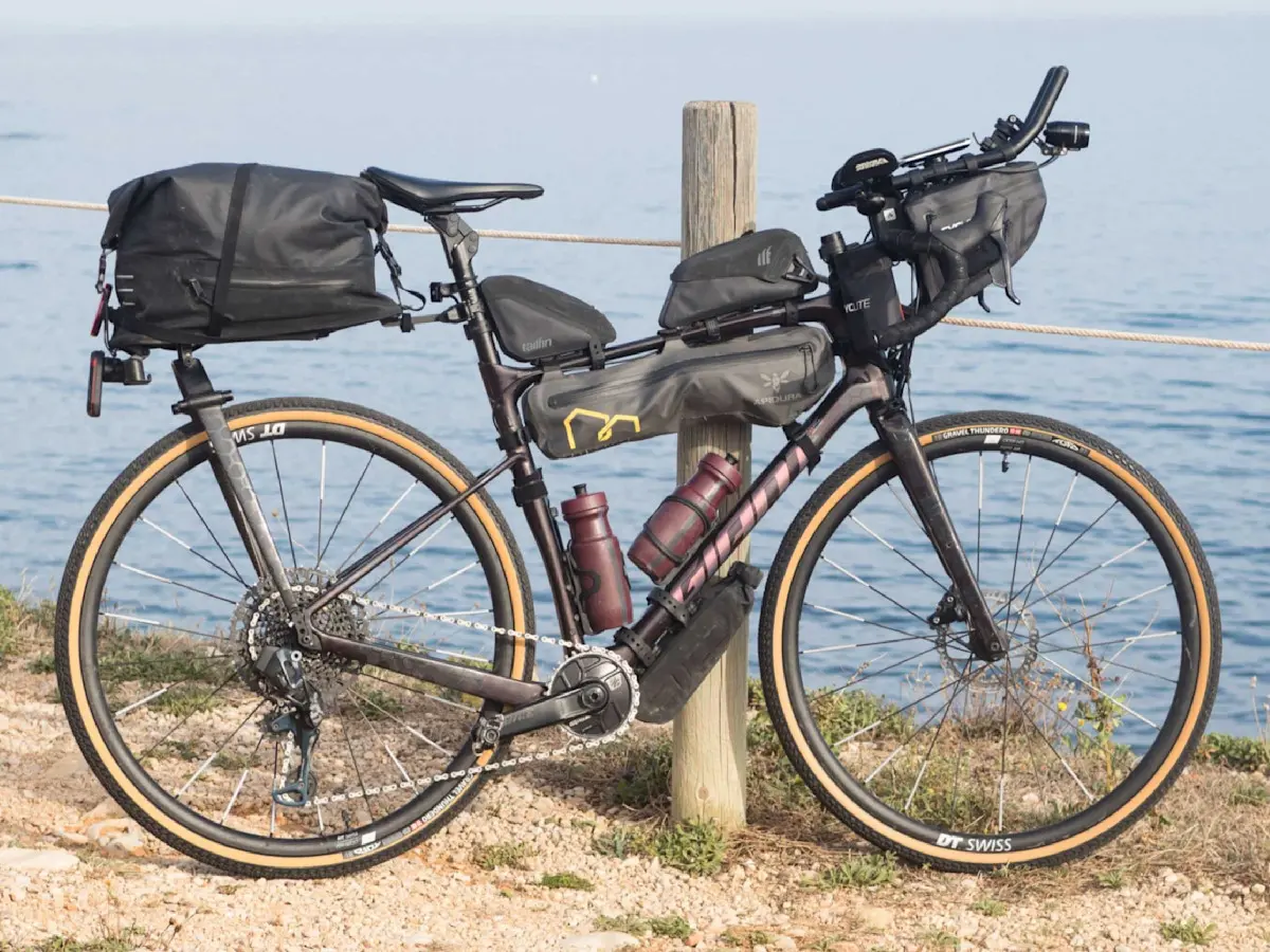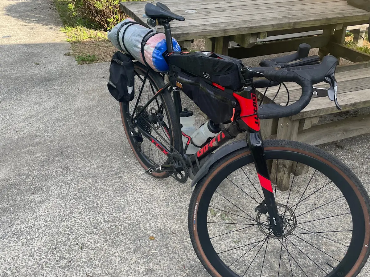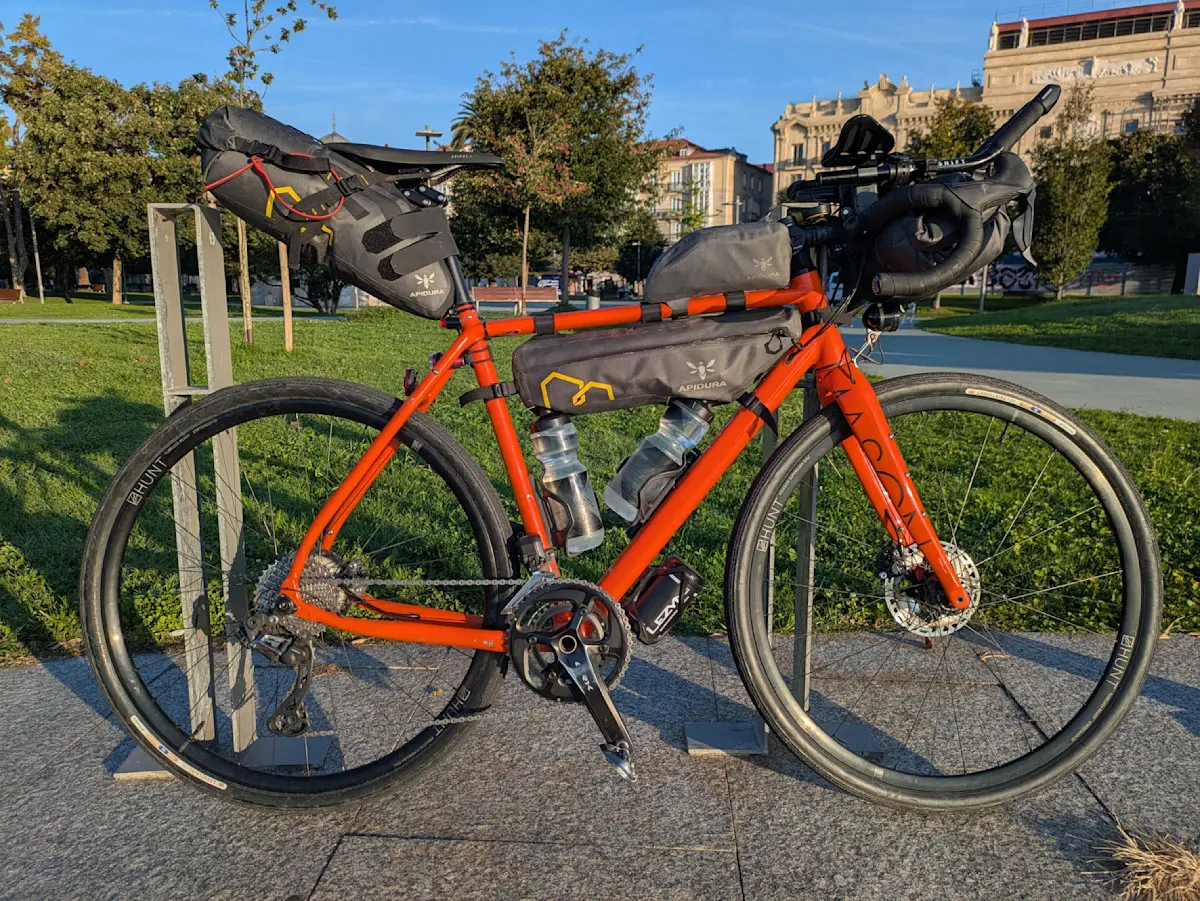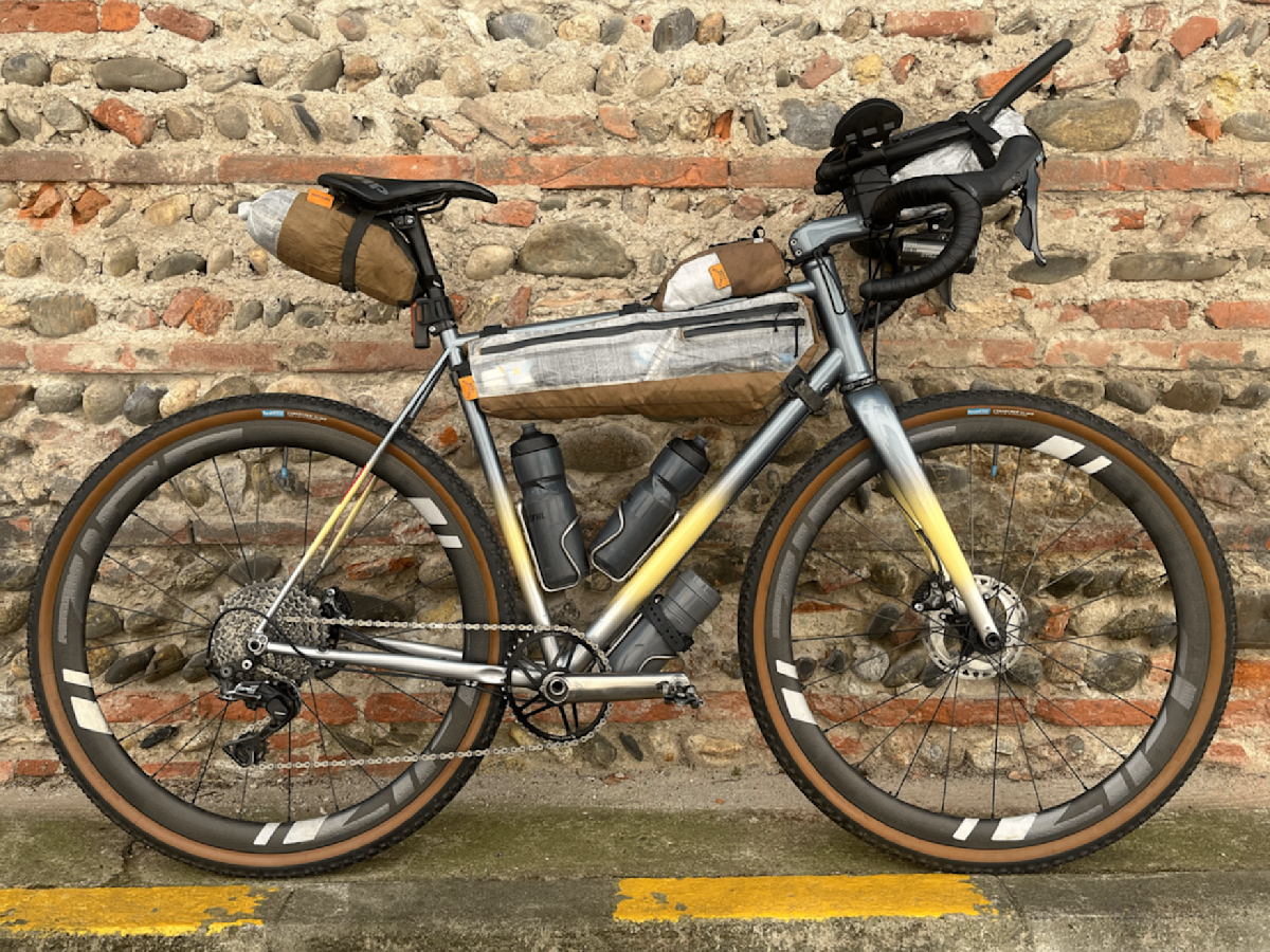 Key items of kit: GRX Di2 2x groupset. Redshift aerobars and dual position seatpost. Apidura bags. Alpkit sleeping bag and bivi