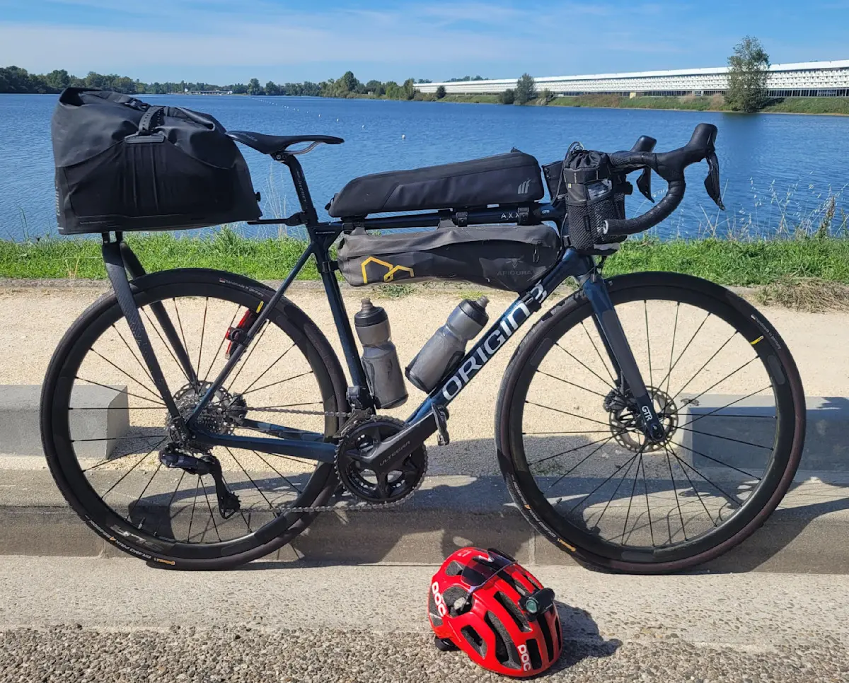 Bike: Origine Axxome 3 GTR with Shimano Ultegra DI2 12v 50/34 x 11-34, Mavic Cosmic SLR 32mm wheels, Continental GP 4 Saisons tires (32mm), Powermeter Inpeak Powercrank-E (left crank) and Garmin Edge 1040 Solar. I'm also carrying a 10,000mAh power bank.
