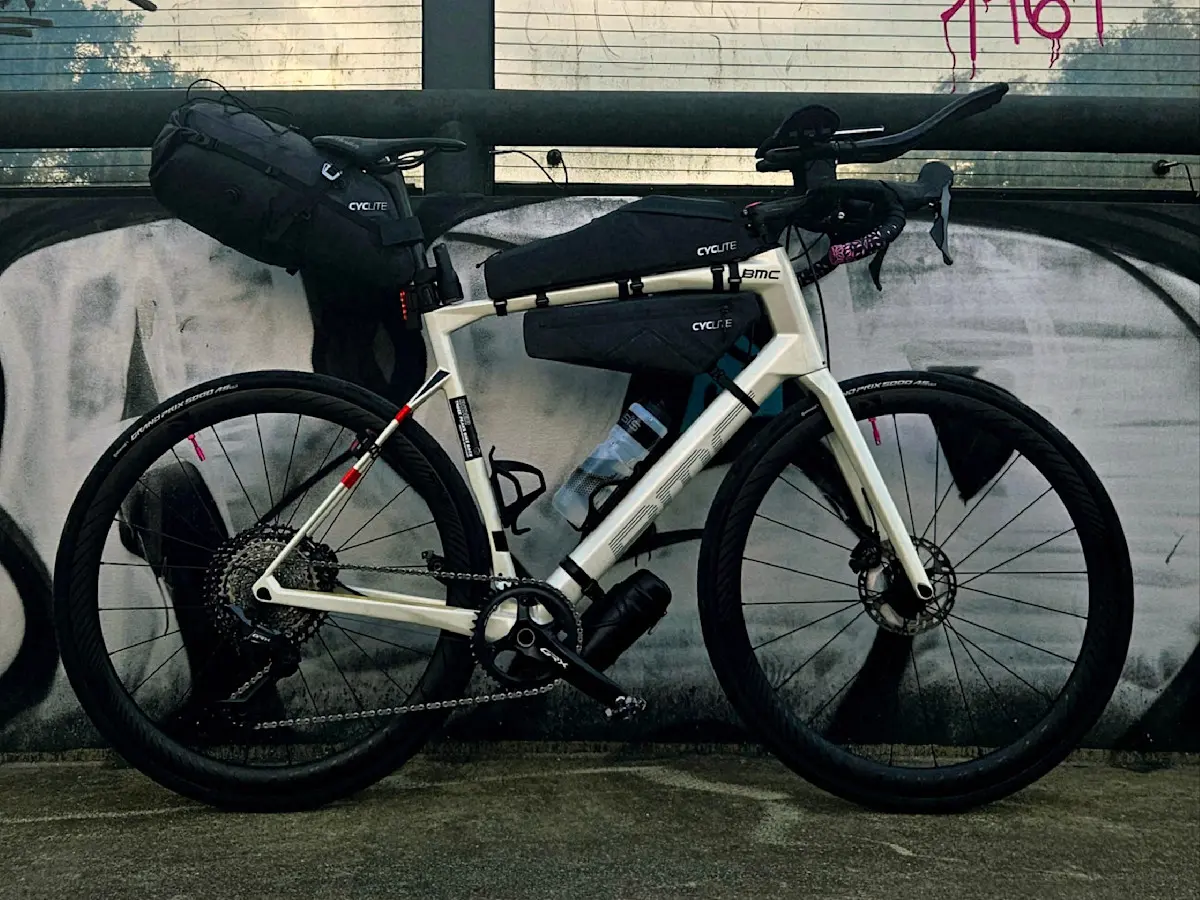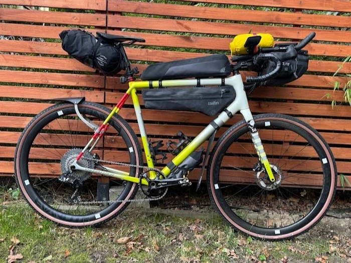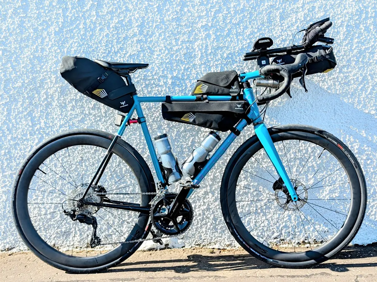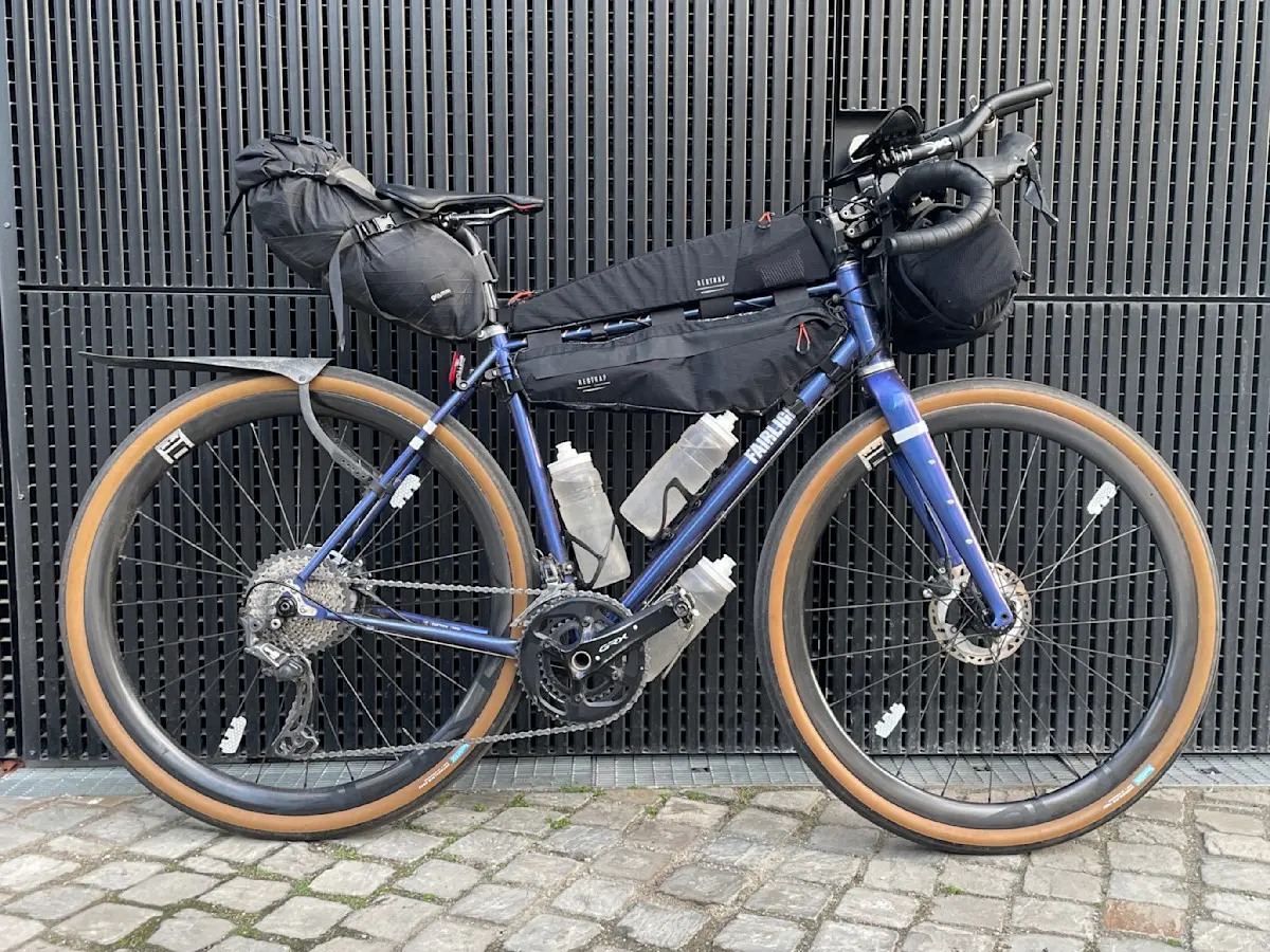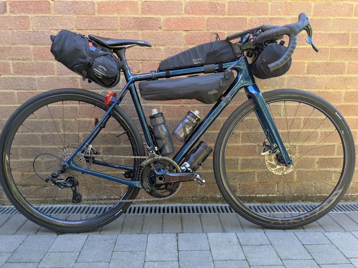 Key items of kit: The Biggest Tailfin Bags I could Squeeze into the frame and then bookended by Restrap's Aero Race Range on the bars and under saddle.